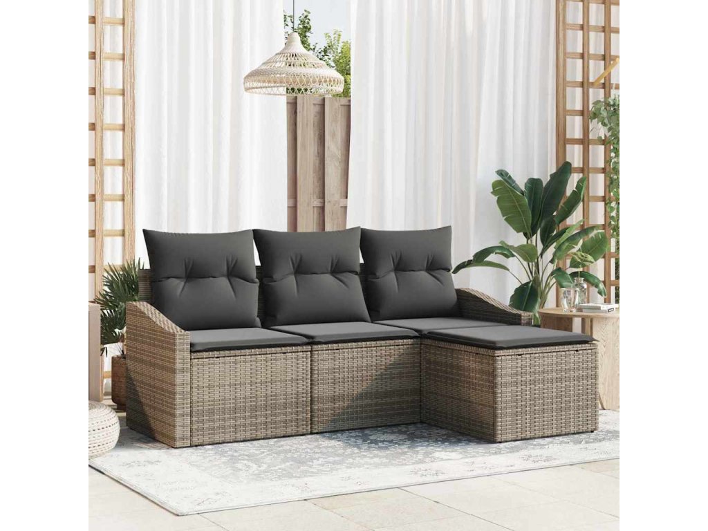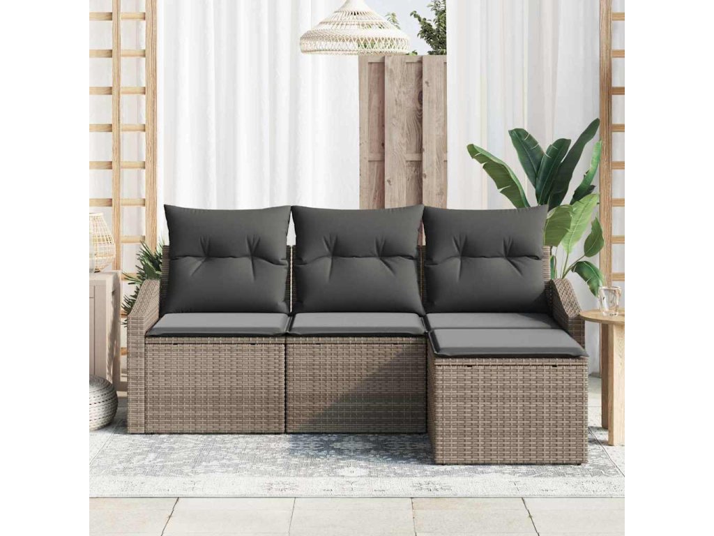 Multidom Sada pohoviek s vankúšom s úložiskom 4 pcs Sivá polyratan