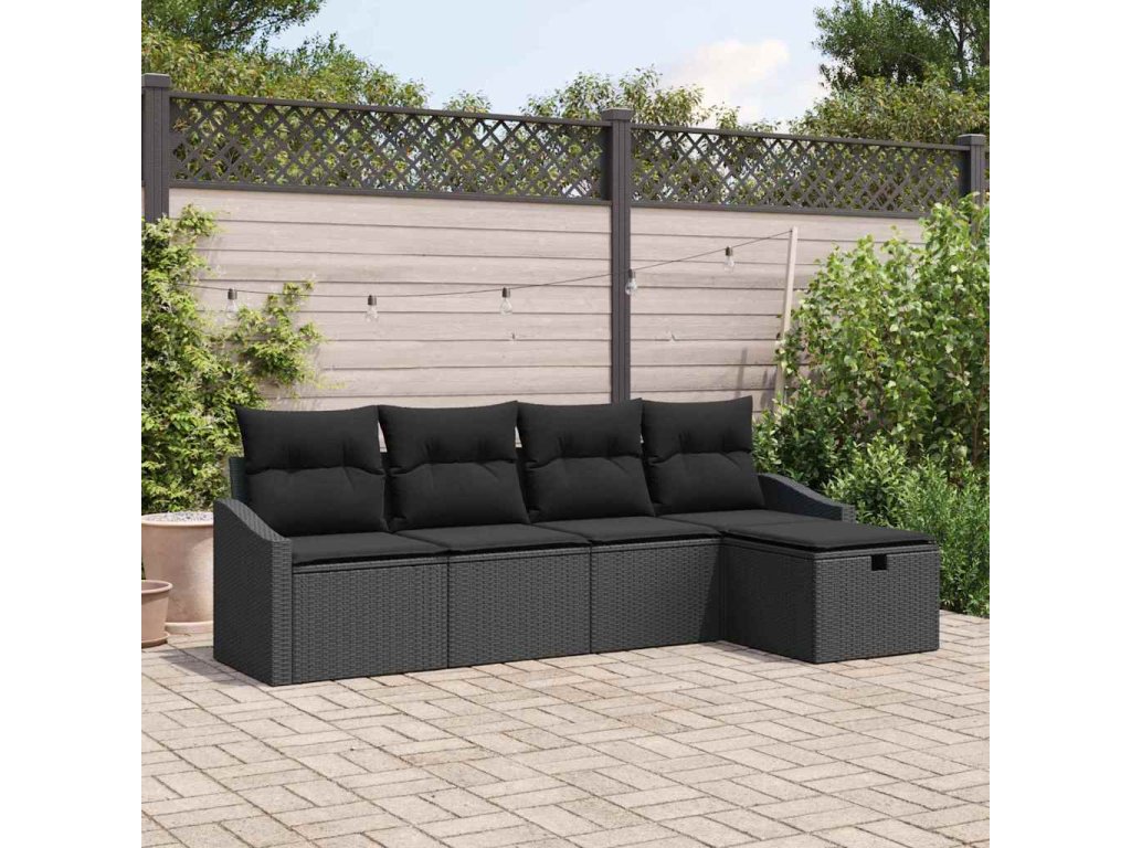 Multidom Sada pohoviek s vankúšom s úložiskom 5 pcs Čierna polyratan