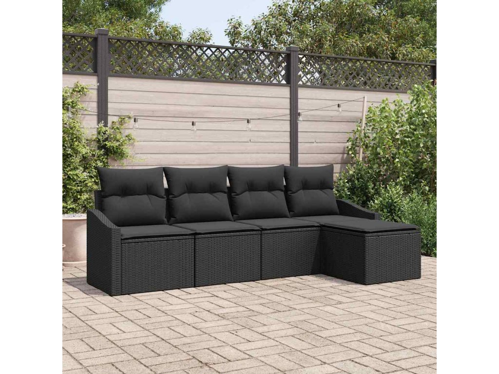 Multidom Sada pohoviek s vankúšom s úložiskom 5 pcs Čierna polyratan