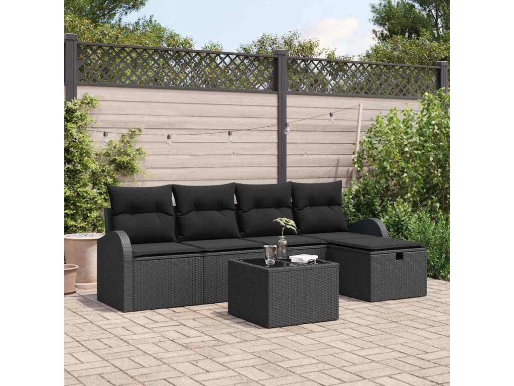 Multidom Sada pohoviek s vankúšom s úložiskom 6 pcs Čierna polyratan