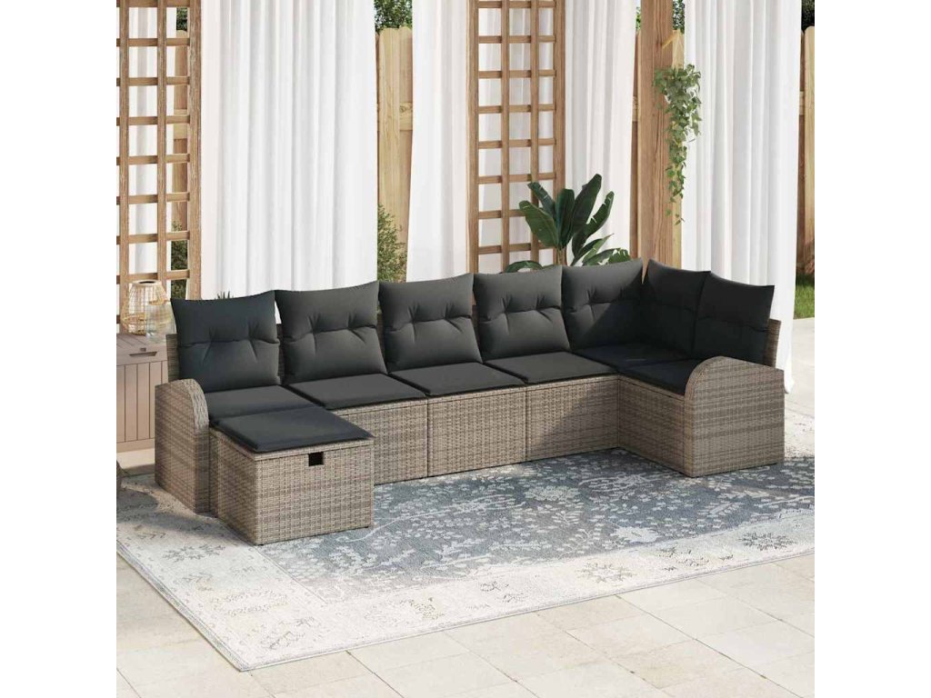 Multidom Sada pohoviek s vankúšom s úložiskom 7 pcs Sivá polyratan