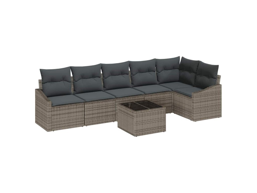 Multidom Sada pohoviek s vankúšom s úložiskom 7 pcs Svetlosivá polyratan