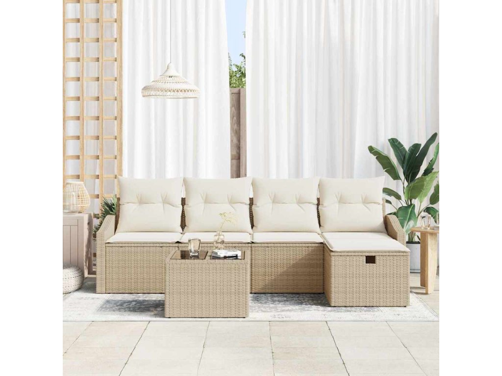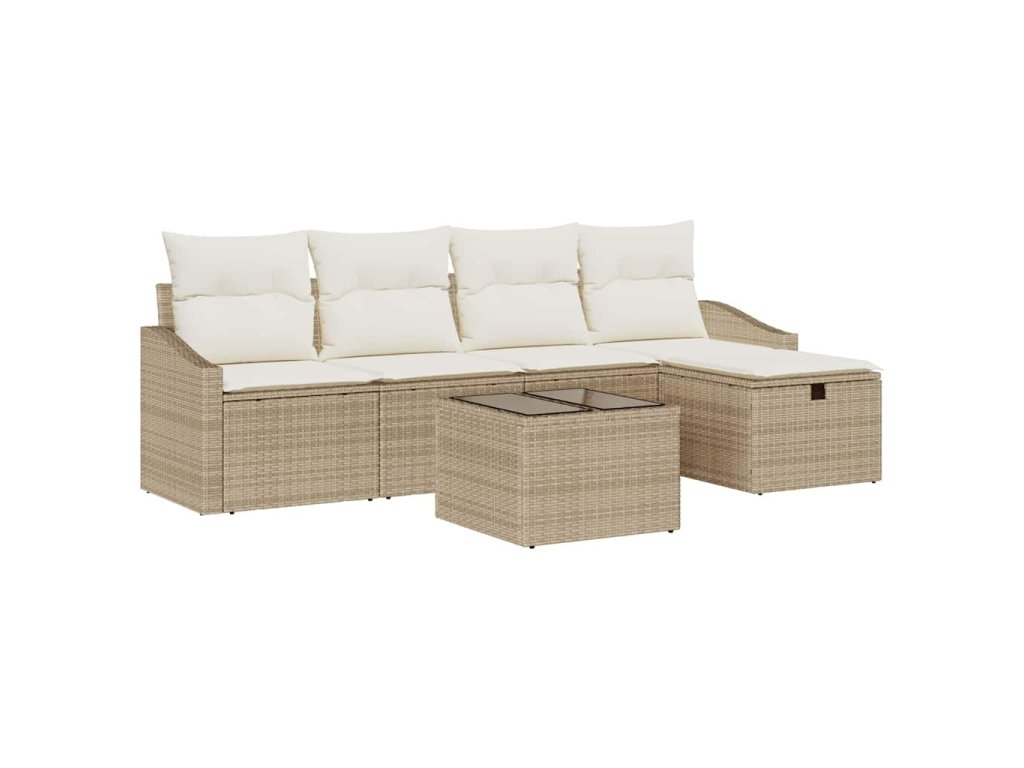Multidom Sada pohoviek s vankúšom s úložiskom Béžová polyratan