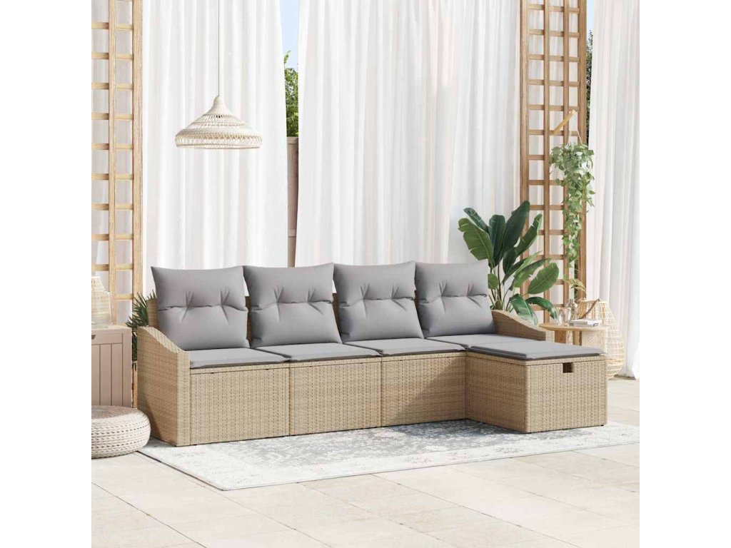 Multidom Sada pohoviek s vankúšom s úložiskom Béžová polyratan