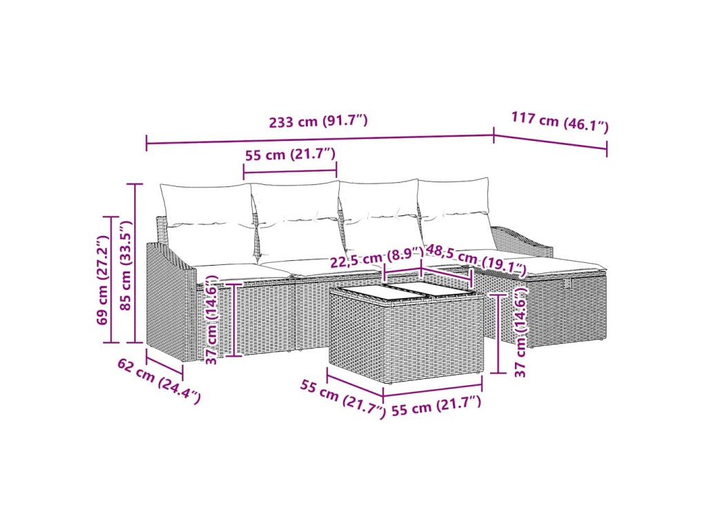 Tento luxusný set záhradných pohoviek je štýlovým doplnkom pre každý vonkajší priestor. Má moderný dizajn a elegantný vzhľad, ktorý sa hodí na terasy a do záhrad. Ponúka pohodlie a povzbudzuje k relaxácii a konverzácii počas slnečných dní. Modulárne sedenie je flexibilné, takže si ho môžete prispôsobiť na rôzne akcie, od tichých večerov po živé posedenia. Kombinuje funkčnosť a estetiku, aby zlepšil váš záhradný čas na odpočinok.