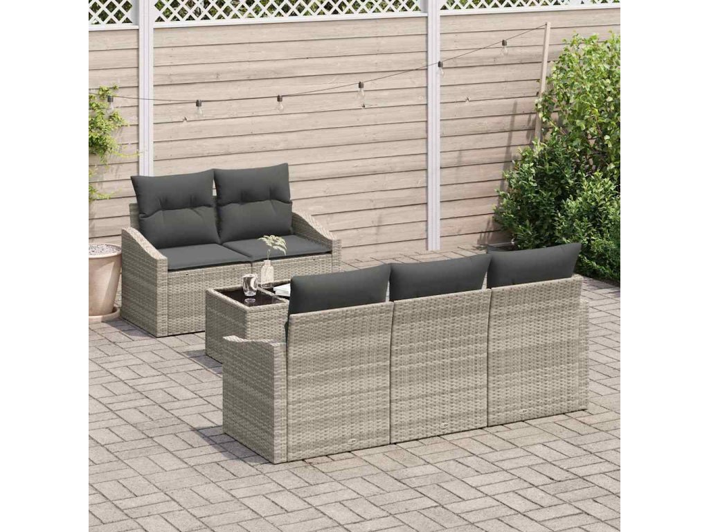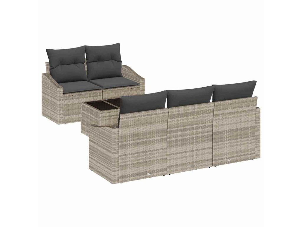 Multidom Sada pohoviek s vankúšom s vankúšom 6 pcs Svetlosivá polyratan