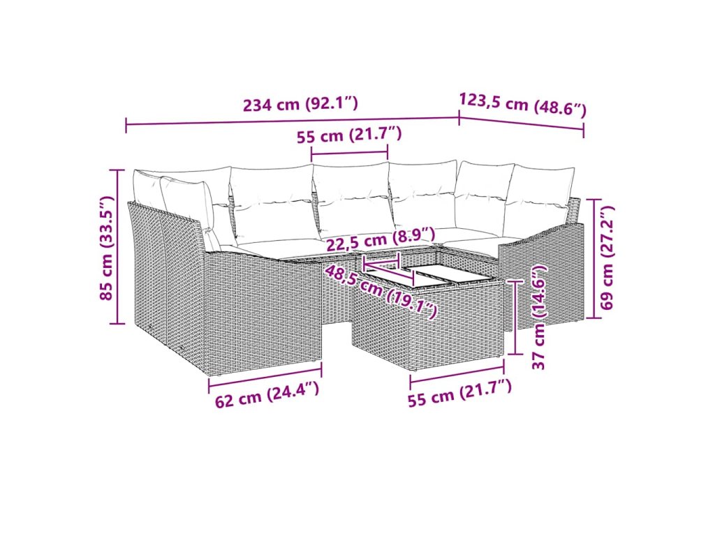 - Obsahuje komponenty: Súprava má 2 rohové sedadlá, 2 centrálne sedadlá, 2 pohovky s podrúčkami a šikovný stôl. Vankúše na sedenie sú mäkké a polyesterové, takže skvele podporujú a dodávajú pohodlie. Sklenený povrch stola je skvelým miestom na nápoje alebo knihy.