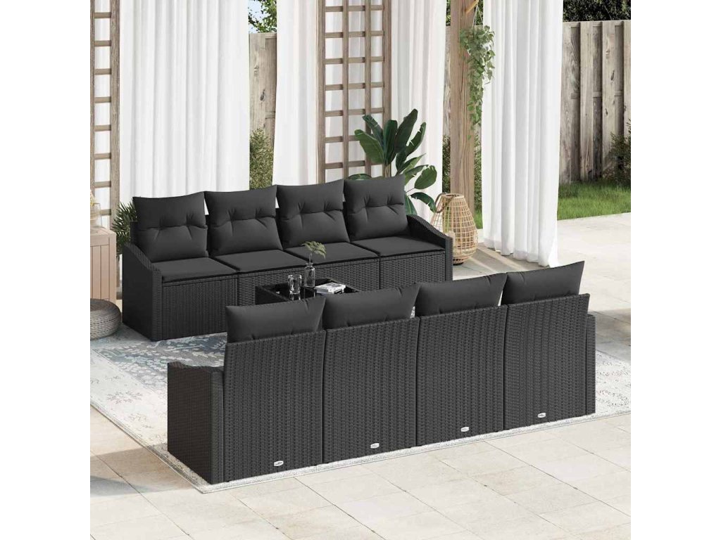 Multidom Sada pohoviek s vankúšom s vankúšom 9 pcs Čierna polyratan