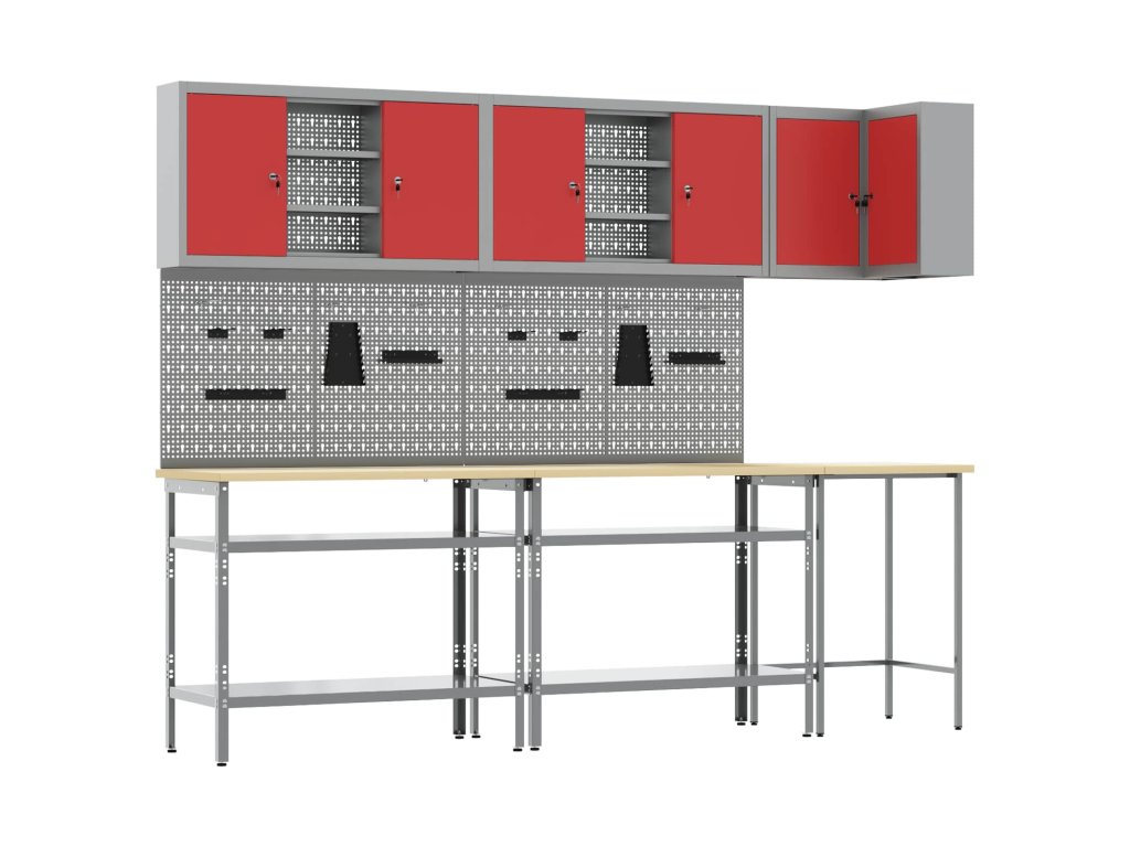 - Materiály: Tento pracovný kabinet je z ocele s práškovou povrchovou úpravou a kompozitného dreva, čo zaručuje silný a spoľahlivý priestor na ukladanie náradia. Materiály sú vybrané tak, aby vydržali a poskytovali dlhé roky bez problémov.