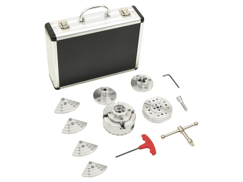 Súprava je vyrobená z ocele, je odolná a pevná. Ako príslušenstvo obrábacieho stroja využíva na upnutie a polohovanie obrobku radiálny pohyb pohyblivých čeľustí rovnomerne rozložených na skľučovadle. Táto súprava skľučovadla na drevo obsahuje 4-čeľusťové samostrediace skľučovadlo a vymeniteľné čeľuste pre vretená, misky a obrobky, ktoré sa ťažko upevňujú. Sada je vhodná pre vreteno 1" x 8 TPI.