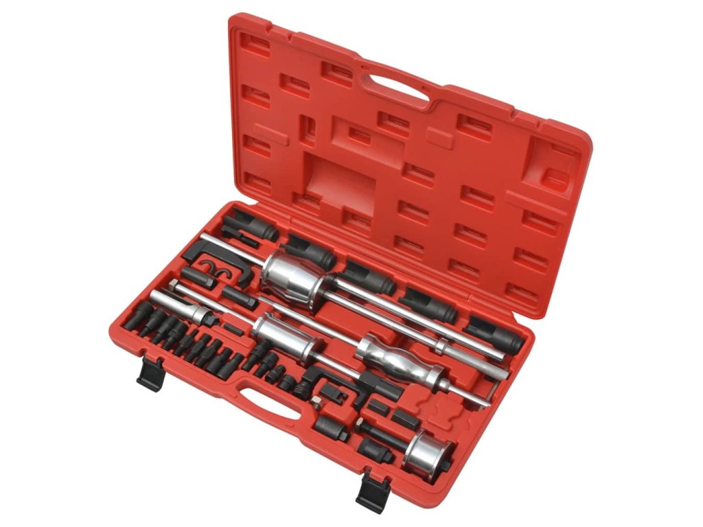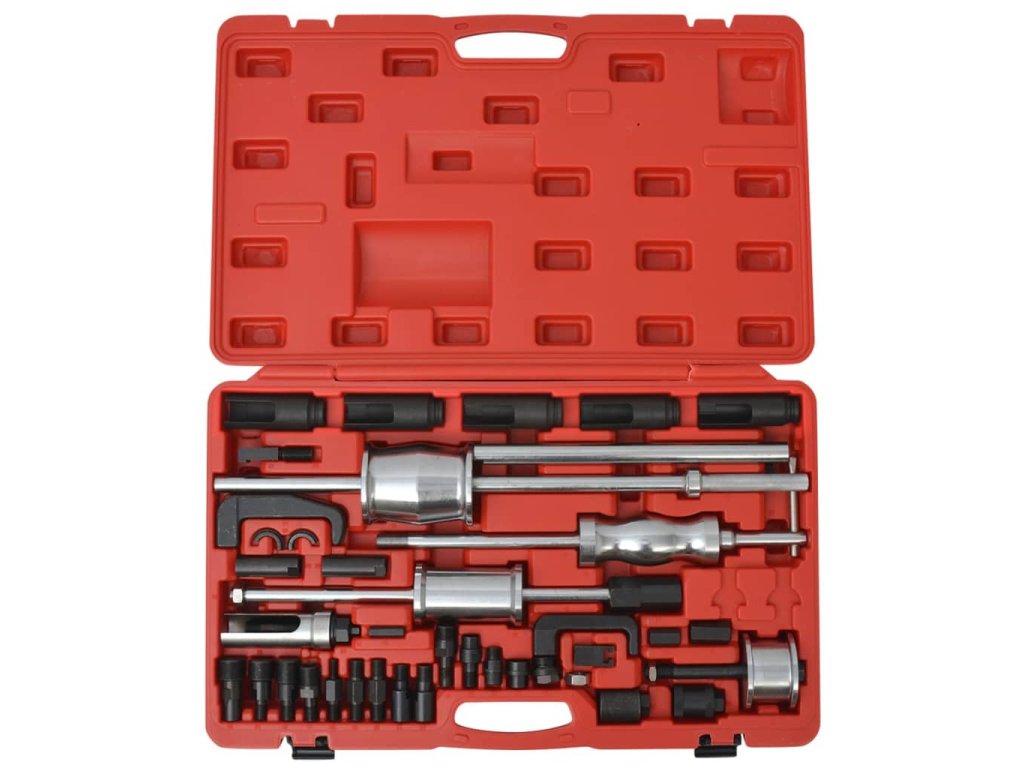 Sada sťahovákov vstrekovačov je vyrobená z vysoko kvalitnej ocele, čo zaručuje vynikajúcu trvácnosť. Všetky nástroje sú dodávané v robustnom kufríku pre ľahké skladovanie a prepravu.