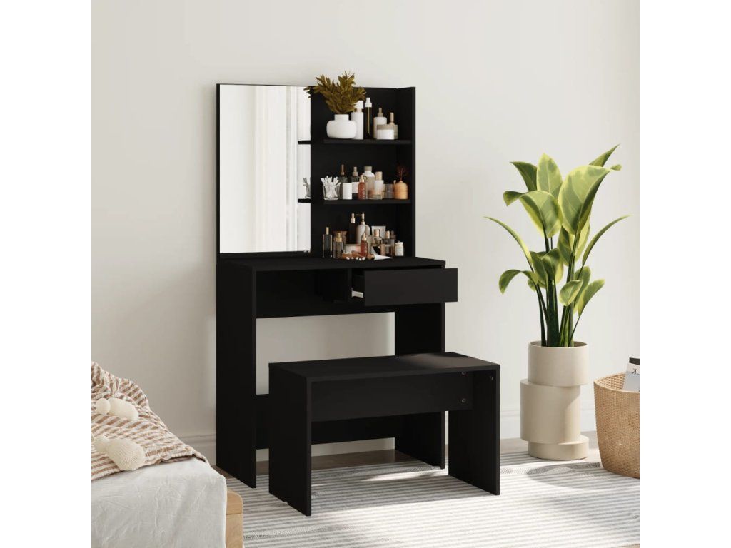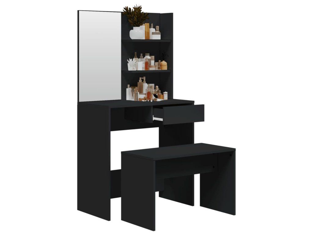 Multidom Sada toaletného stolíka čierna 74,5x40x141 cm