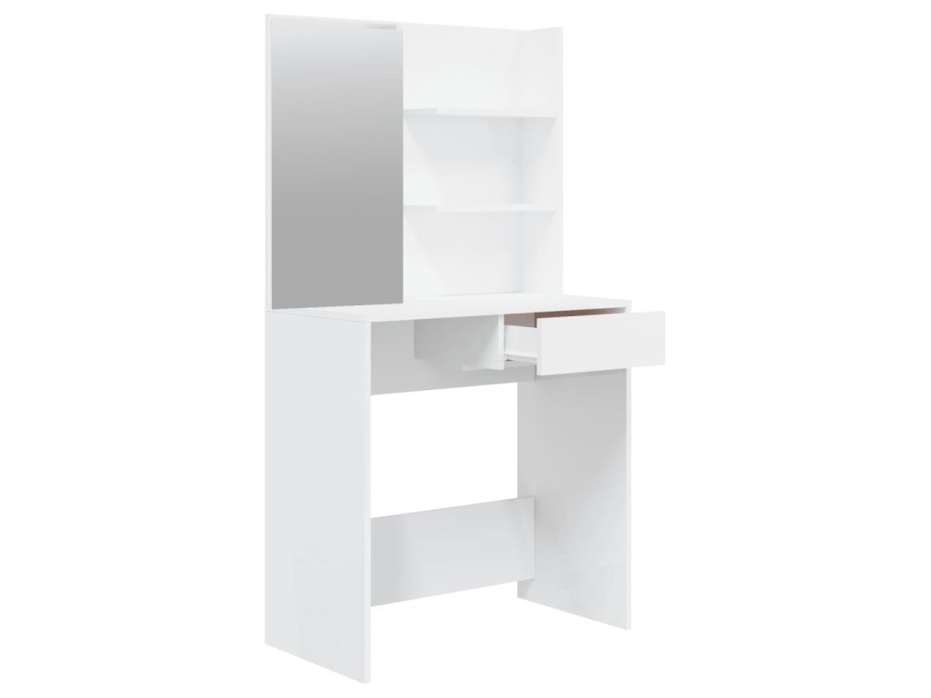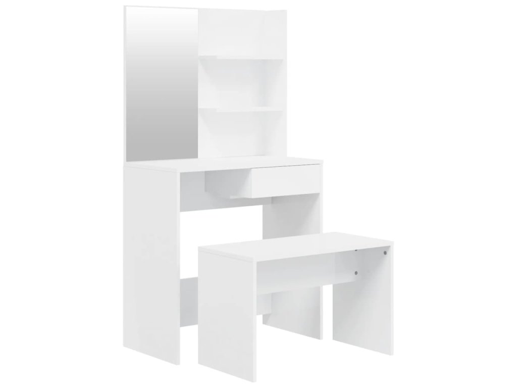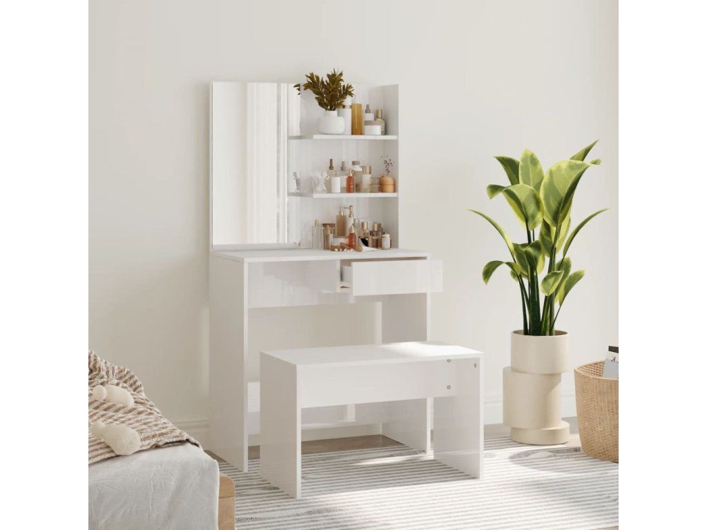 Multidom Sada toaletného stolíka lesklá biela 74,5x40x141 cm