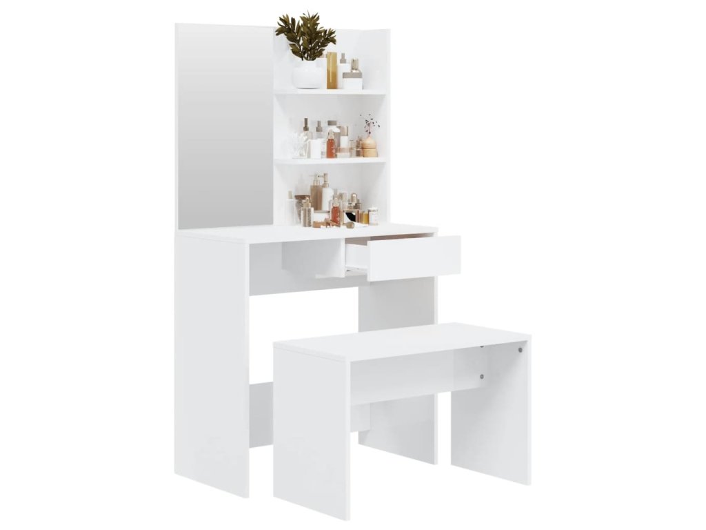 - Úžitkové zrkadlo: Kozmetický stolík so zrkadlom je ideálny pre vašu každodennú kozmetickú rutinu. Zrkadlo vám umožňuje postarať sa o pokožku tváre a naniesť si make-up!