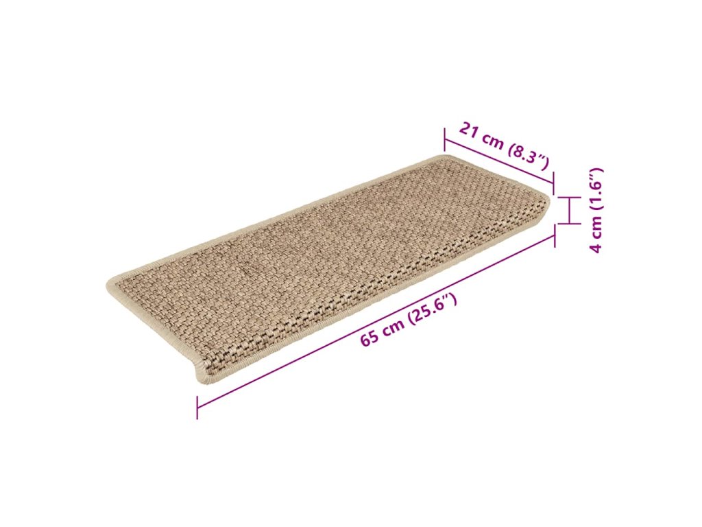Multidom Samolepiace nášľapy na schody sisal 15 ks 65x21x4 cm pieskové