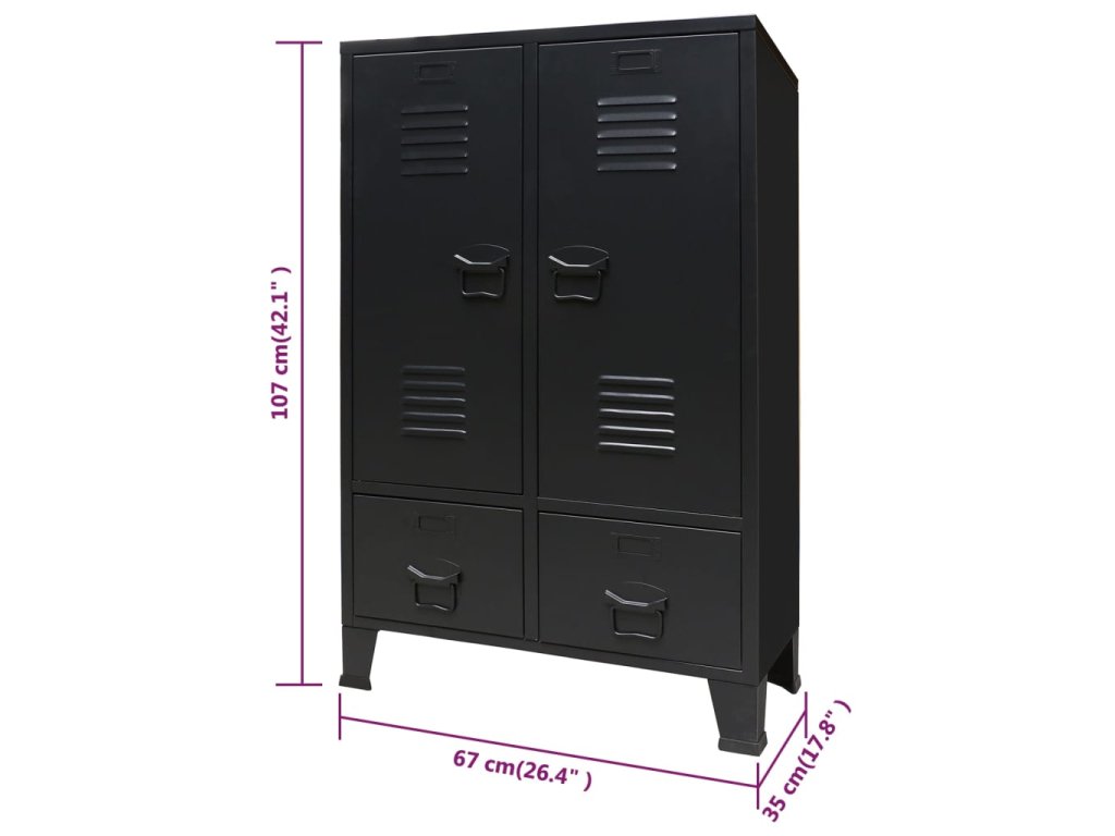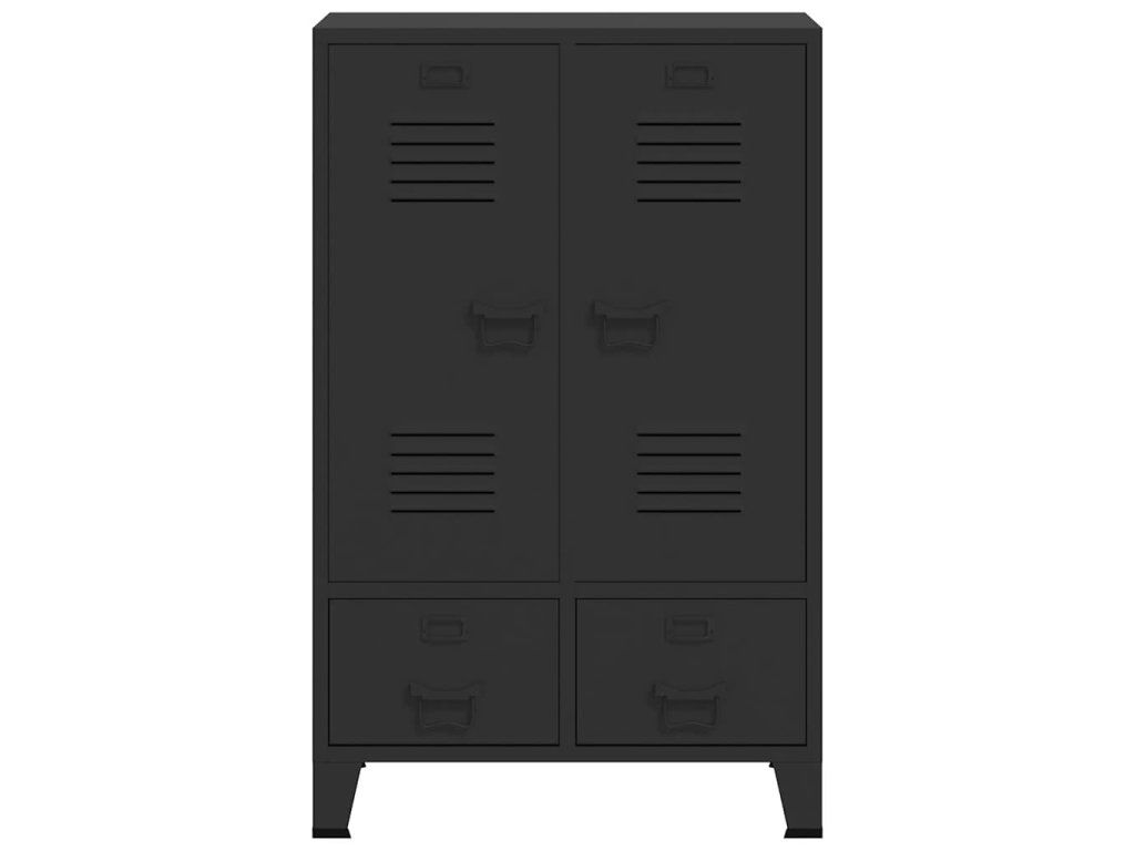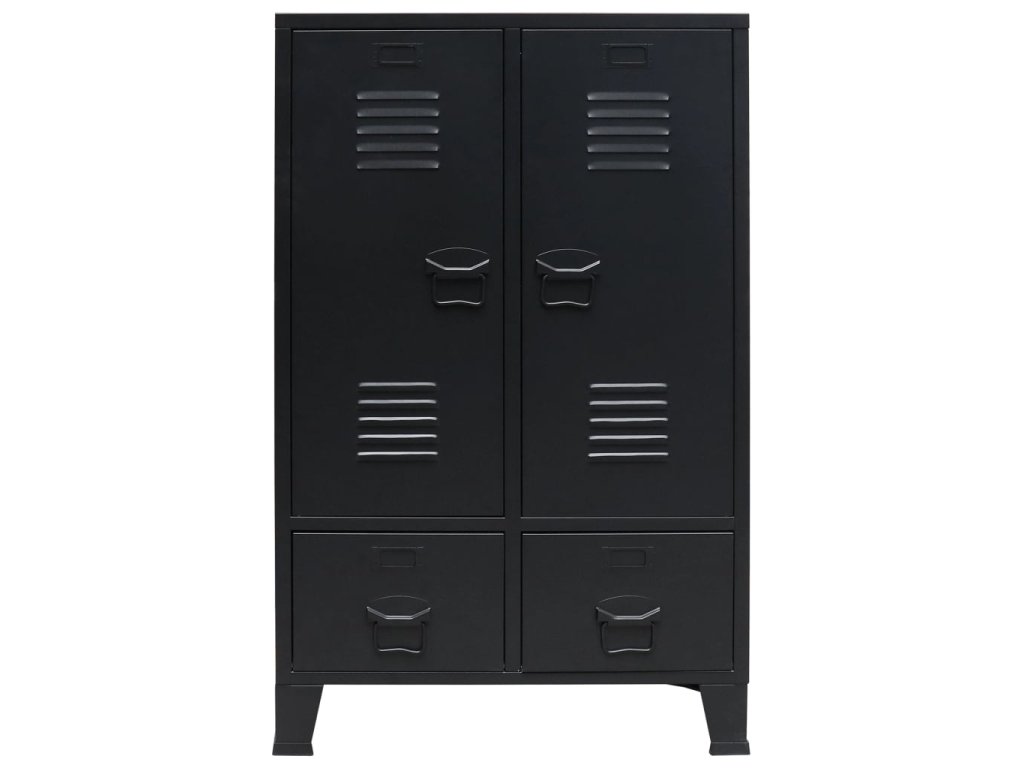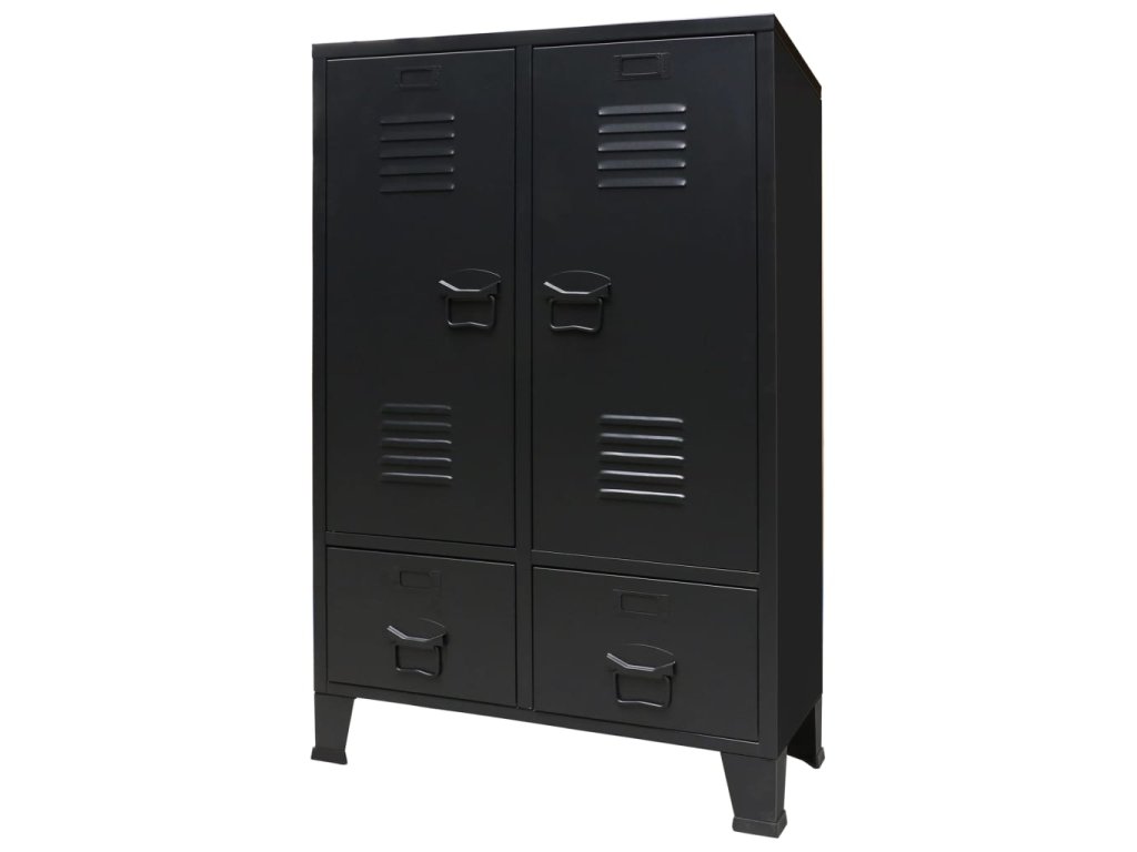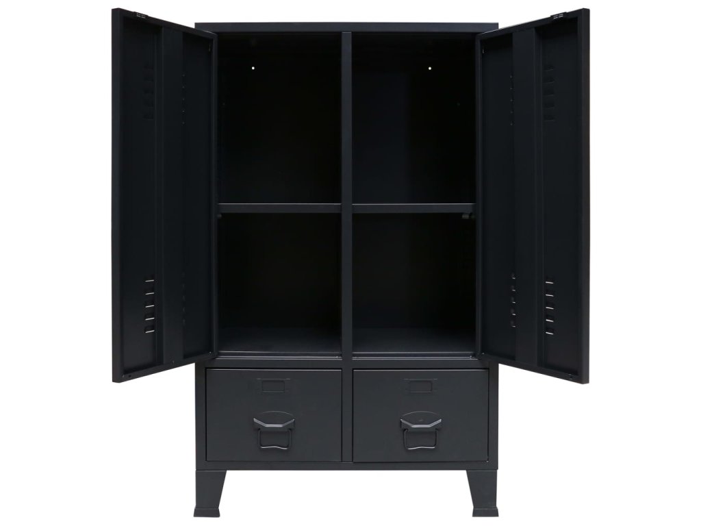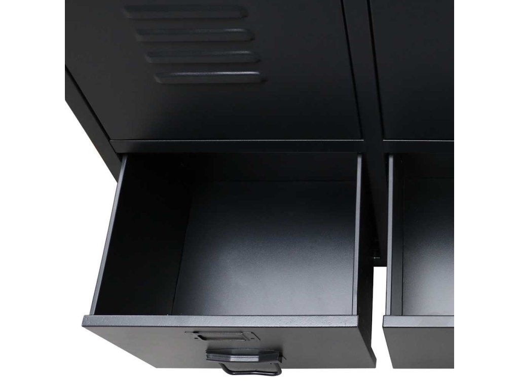Skriňa má 2 nastaviteľné vnútorné police, ktoré vám umožnia si prehľadne roztriediť oblečenie do rôznych kategórií a 2 zásuvky, ktoré poskytujú dostatok priestoru na odkladanie ponožiek, spodného prádla a podobne. Na obidvoch dvierkach sa nachádza držiak na menovku a vetracie otvory, ktoré len umocňujú celkový industriálny vzhľad šatňovej skrinky. Šatník je vyrobený z plechu, takže je trvácny a ľahko sa čistí. Montáž je jednoduchá.