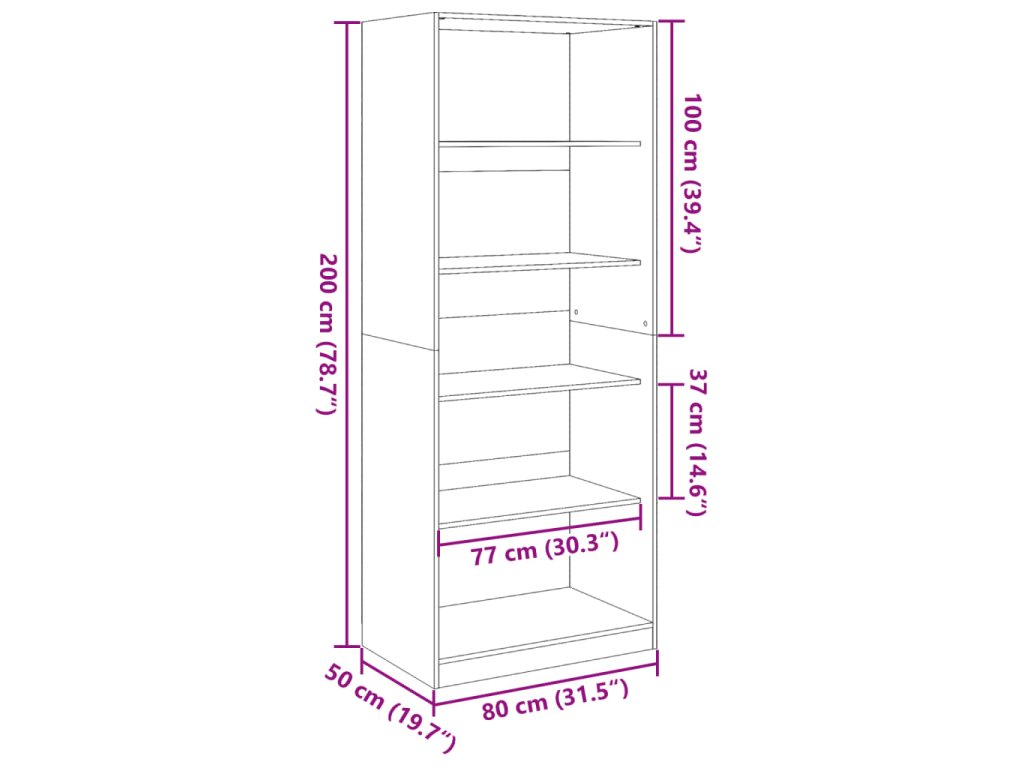 - Rozmery: 80 x 50 x 200 cm (Š x H x V)