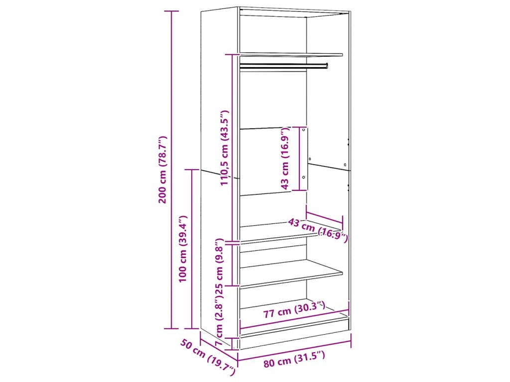 - Rozmery: 80 x 50 x 200 cm (Š x H x V)