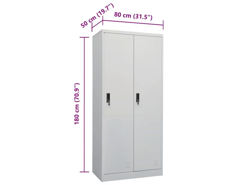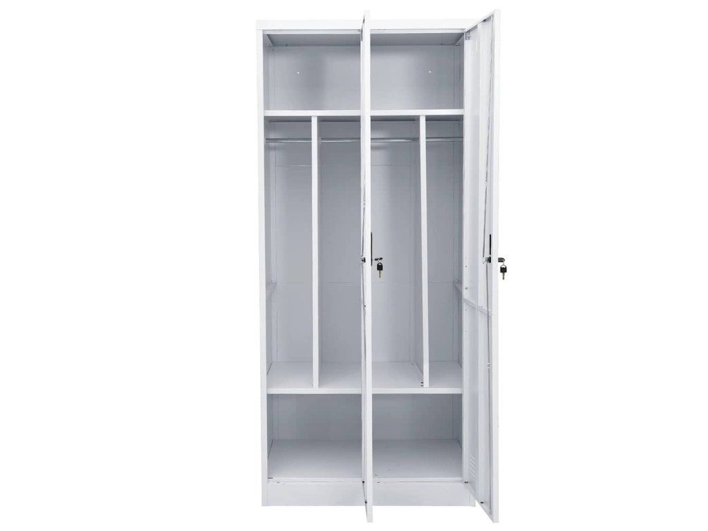 Táto skriňa je vyrobená z ocele, vďaka čomu je odolná a ľahko sa čistí. Má 2 police a 2 zámky. Táto skriňa na oblečenie má veľké priehradky, ktoré poskytnú dostatok úložného priestoru na dlhšie oblečenie, ako aj iné poskladané oblečenie alebo doplnky, ako sú svetre, džínsy, čiapky, kabelky a podobne.