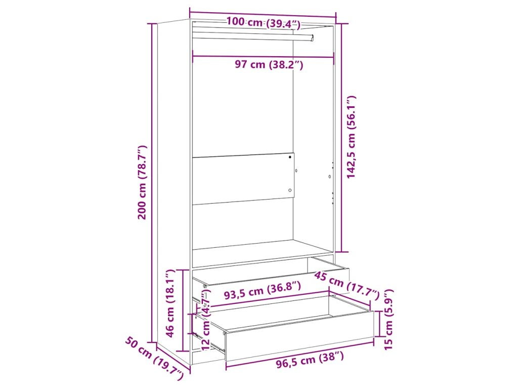 - Rozmery: 100 x 50 x 200 cm (Š x H x V)