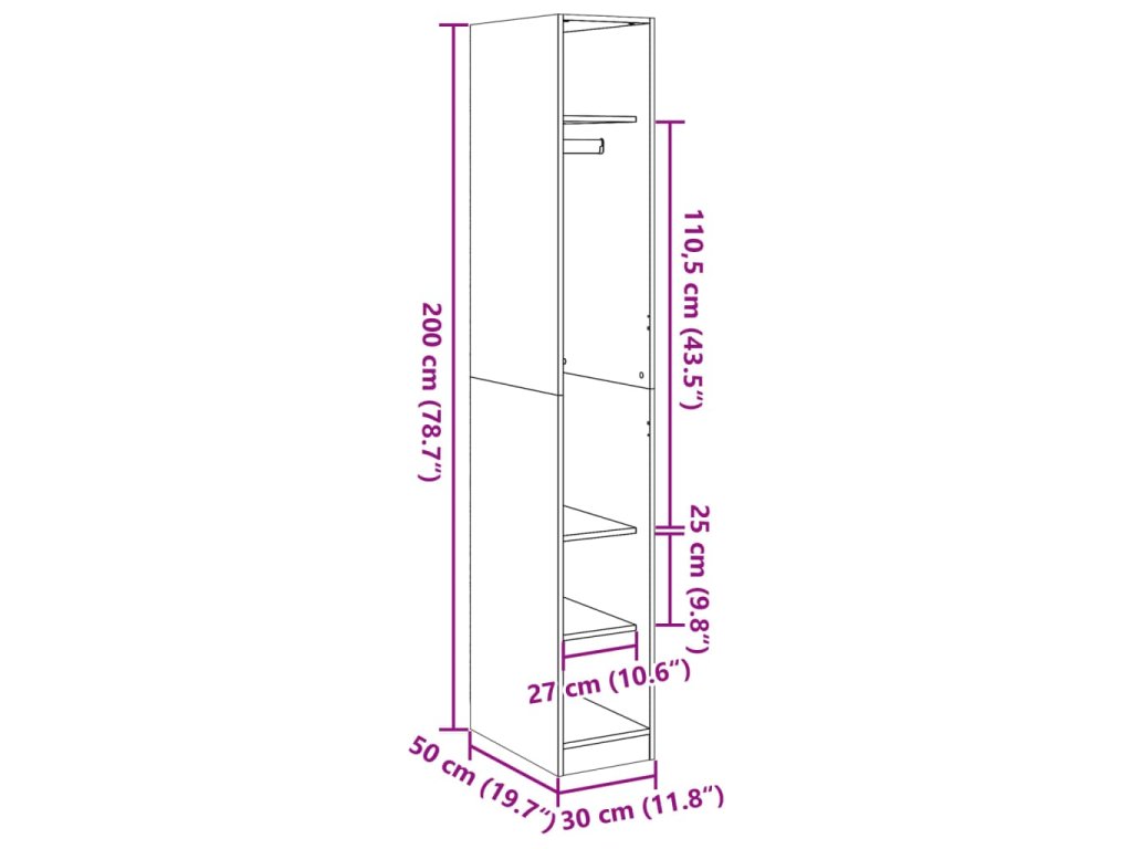 - Rozmery: 30 x 50 x 200 cm (Š x H x V)