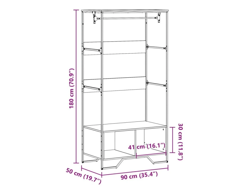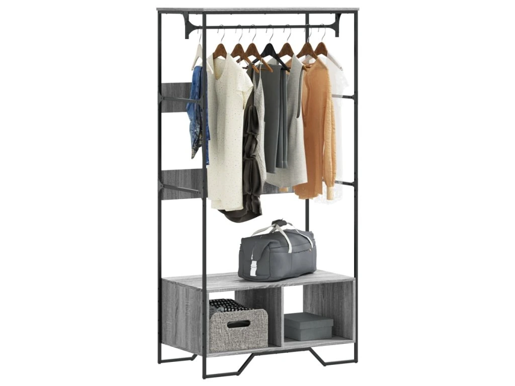 - Dostatok úložného priestoru: Vešiak s policami má dostatok priestoru na usporiadanie oblečenia a tašiek. Spodná polička je skvelá na krabice a zložené oblečenie, zatiaľ čo dlhšie oblečenie môžete zavesiť na tyč.