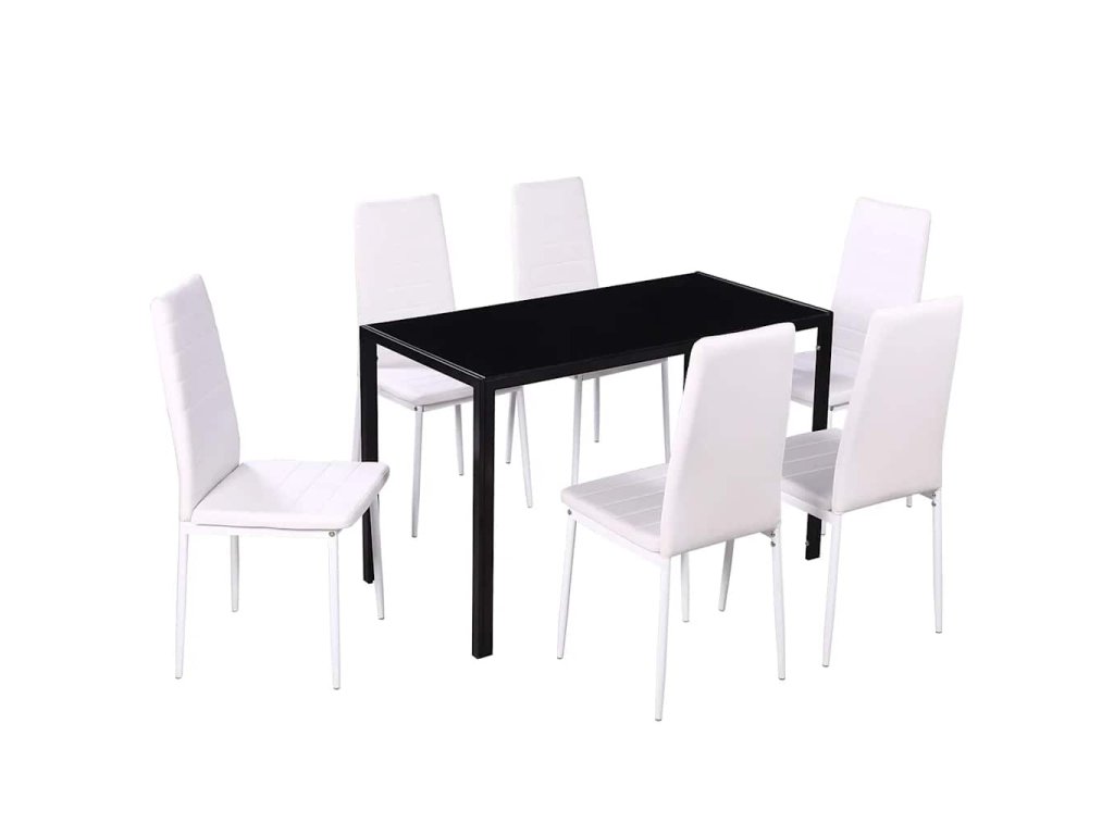 Táto jedálenská súprava pozostávajúca zo 7 kusov má hladký a moderný dizajn a je ideálna pre tých, ktorí chcú svojmu interiéru dodať štýl.