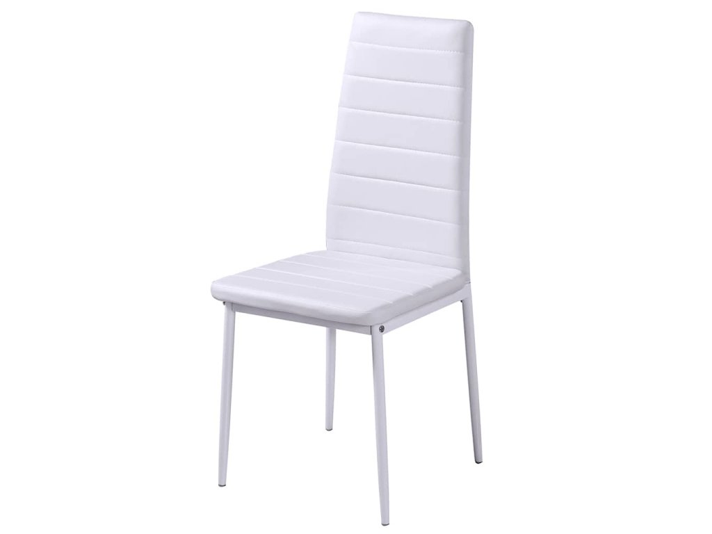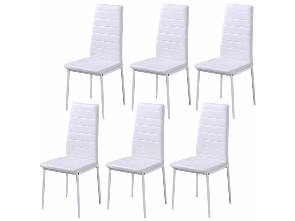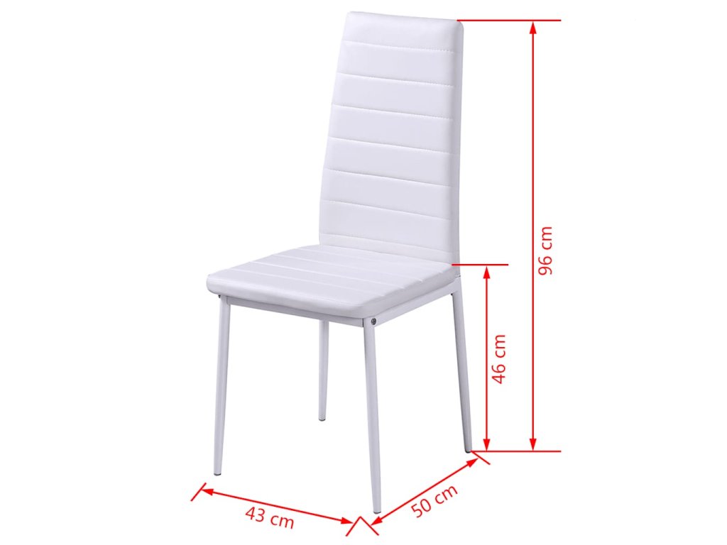 Doska stola je vyrobená z veľmi odolného tvrdeného skla, ktoré sa ľahko čistí. Každá stolička má vysokokvalitný poťah z umelej kože. Poddajné vyčalúnené sedadlá sú veľmi pohodlné.