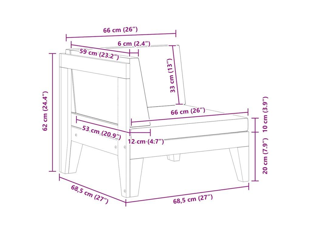 - Rozmery rohovej pohovky: 68,5 x 68,5 x 62 cm (Š x H x V)