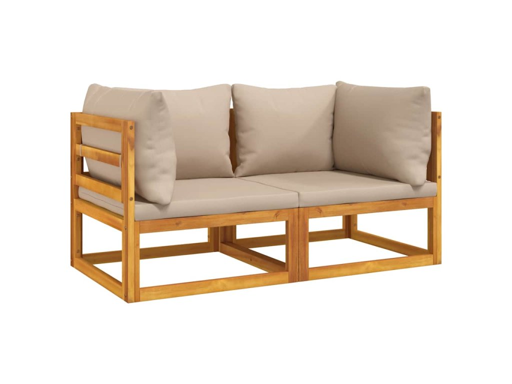 Multidom Sekčné rohové pohovky 2 ks sivohnedé vankúše masívna akácia