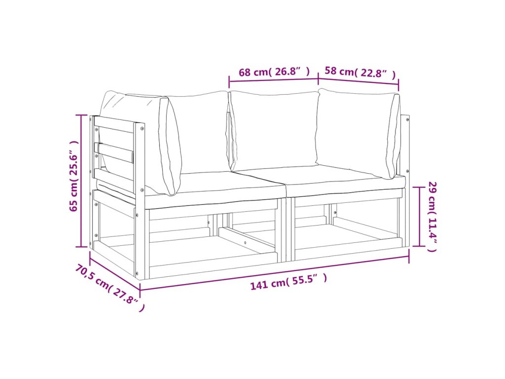 - Rozmery chrbtového vankúša: 58 x 45 x 15 cm / 68 x 45 x 15 cm (D x Š x H)