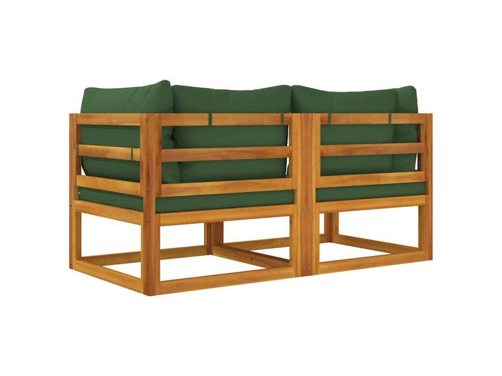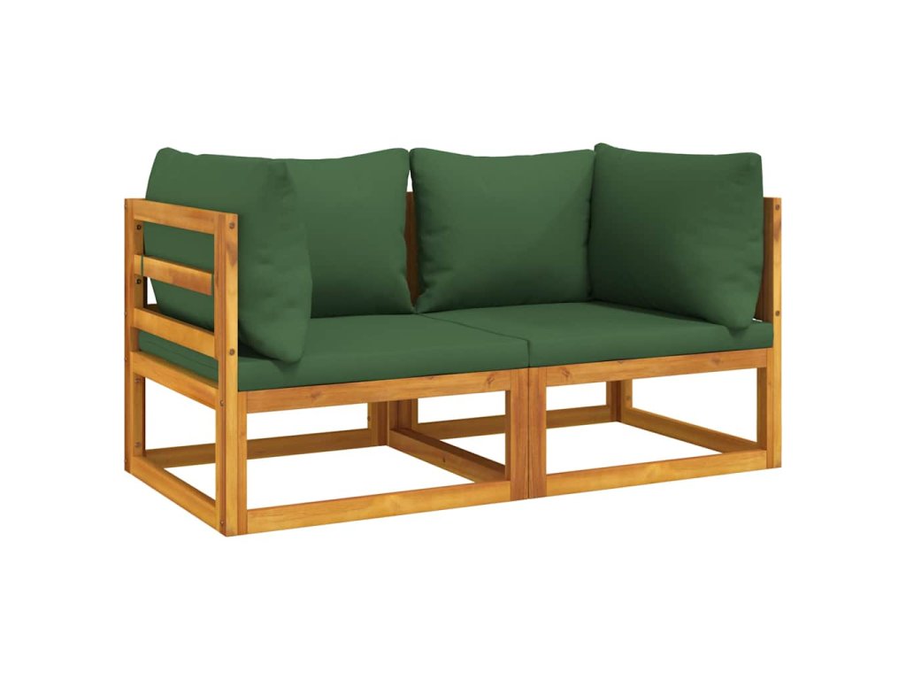 Multidom Sekčné rohové pohovky 2 ks so zelenými vankúšmi masívna akácia