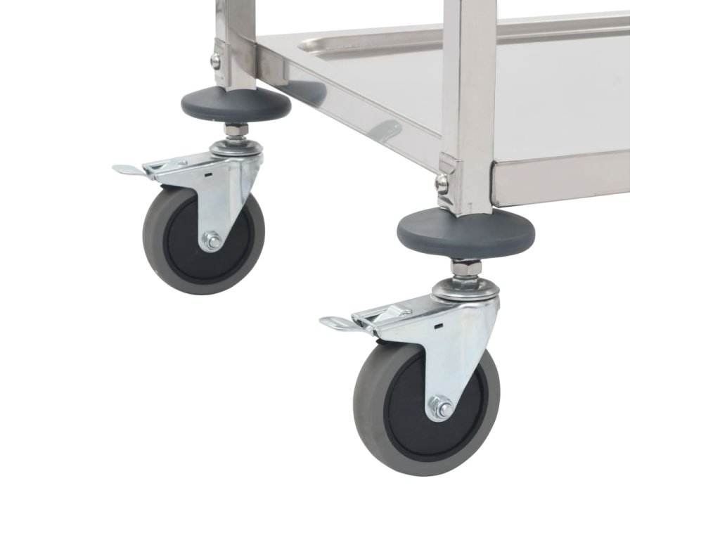 Veľké podnosy poskytujú dostatok priestoru na optimálne servírovanie jedál a nápojov. Vďaka rámu z nehrdzavejúcej ocele je servírovací vozík stabilný a pevný aj pri plnom zaťažení. Kolieska sa pohybujú plynule, a tak vám umožnia manipulovať s vozíkom bez námahy a potichu. Dve kolieska sú navyše vybavené brzdami, aby vozík zostal stáť na mieste, vďaka čomu ho budete môcť používať aj na odkladanie náradia či bežných domácich potrieb.