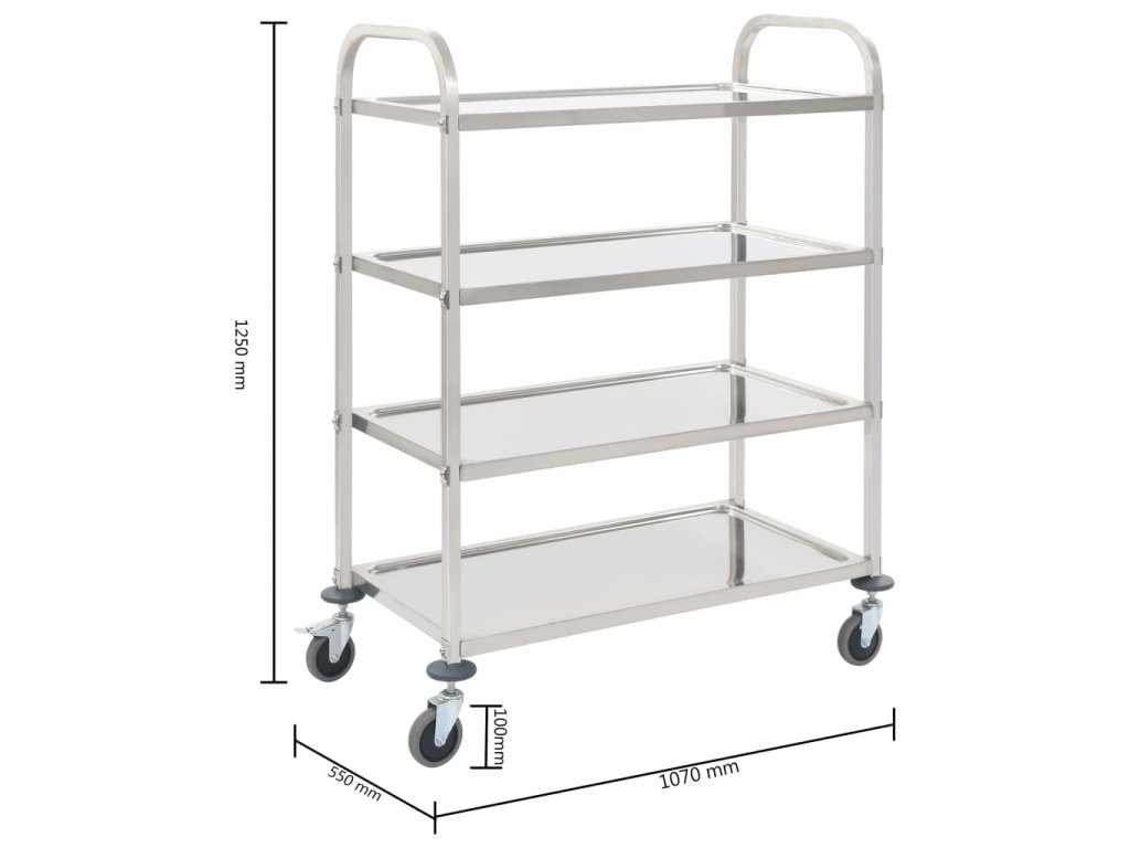 Multidom Servírovací vozík, 4 police 107x55x125 cm, nehrdzavejúca oceľ