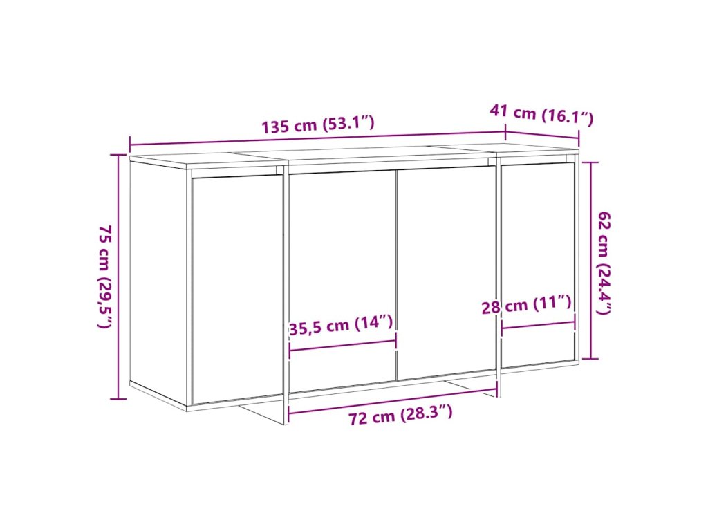 - Celkové rozmery: 135 x 41 x 75 cm (D x Š x V)