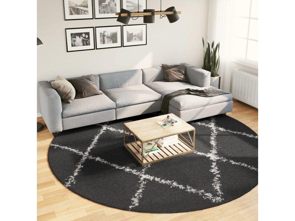 Multidom Shaggy koberec PAMPLONA, vysoký vlas, čierno krémový Ø 280 cm