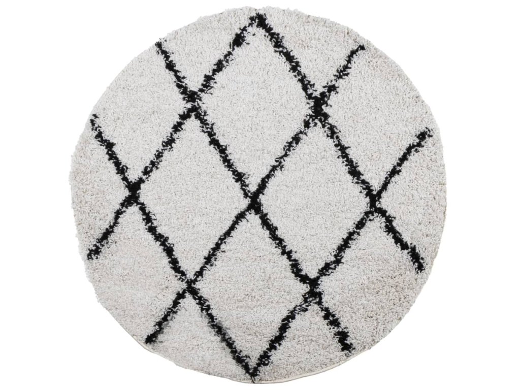 Multidom Shaggy koberec PAMPLONA, vysoký vlas, krémovo čierny Ø 280 cm