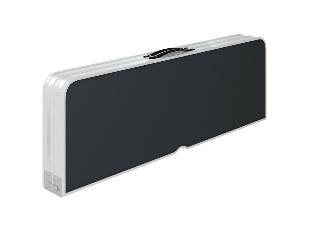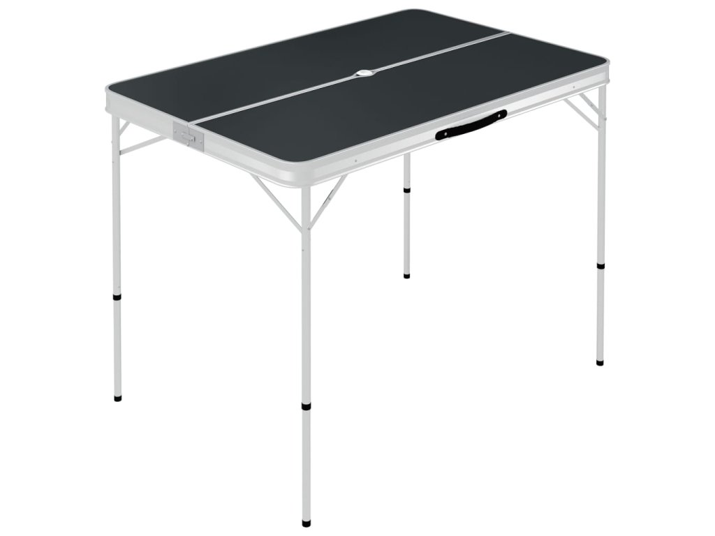Tento stôl je vyrobený z ľahkého hliníka a stolovej dosky z MDF a dá sa jednoducho rozložiť, ľahko sa nastavuje a rýchlo sa čistí. Vďaka pevnému rámu a doske je tento stôl pevný a odolný. Kempingový stôl a lavice sú skladacie, čo uľahčí prepravu a skladovanie. Lavičky sa navyše dajú integrovať do stola, aby sa ušetril priestor.
