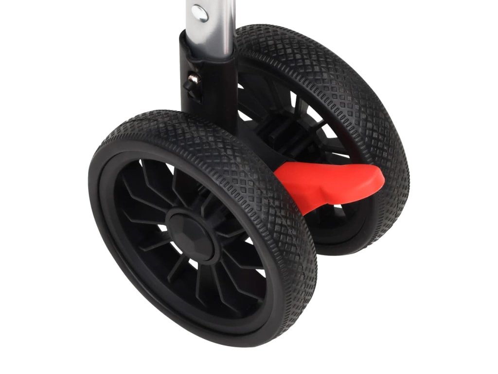 - Praktické kolieska: Predné kolieska sa dajú otáčať vo všetkých smeroch pre ľahký pohyb, zatiaľ čo zadné kolieska s brzdou môžu pomôcť pri fixácii kočíka v prípade potreby.