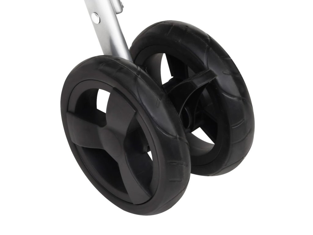 - Praktické kolieska: Predné kolieska sa dajú otáčať vo všetkých smeroch pre ľahký pohyb, zatiaľ čo zadné kolieska s brzdou môžu pomôcť pri fixácii kočíka v prípade potreby.