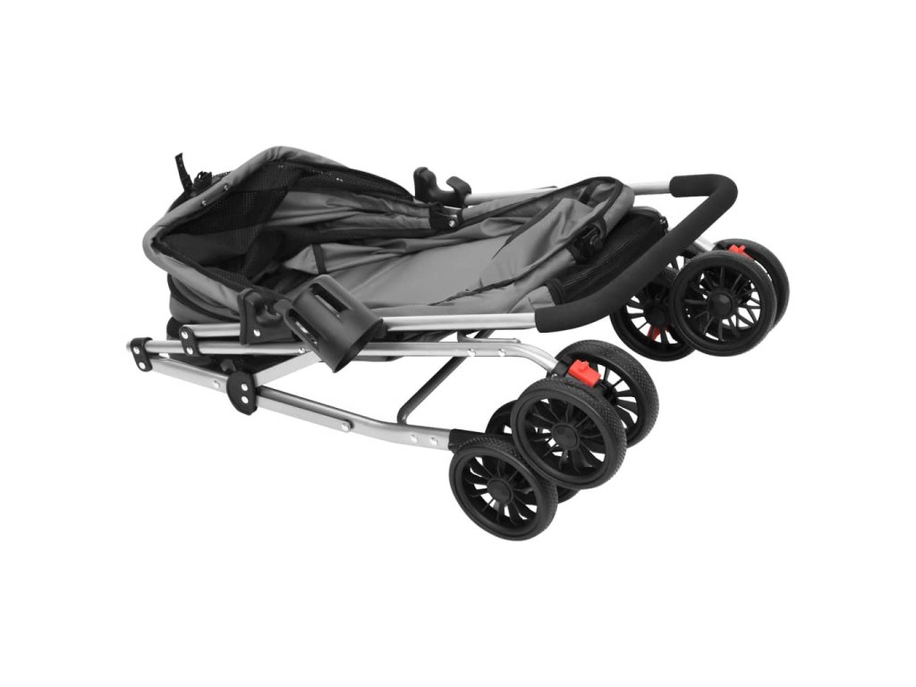 - Praktické kolieska: Predné kolieska sa dajú otáčať vo všetkých smeroch pre ľahký pohyb, zatiaľ čo zadné kolieska s brzdou môžu pomôcť pri fixácii kočíka v prípade potreby.