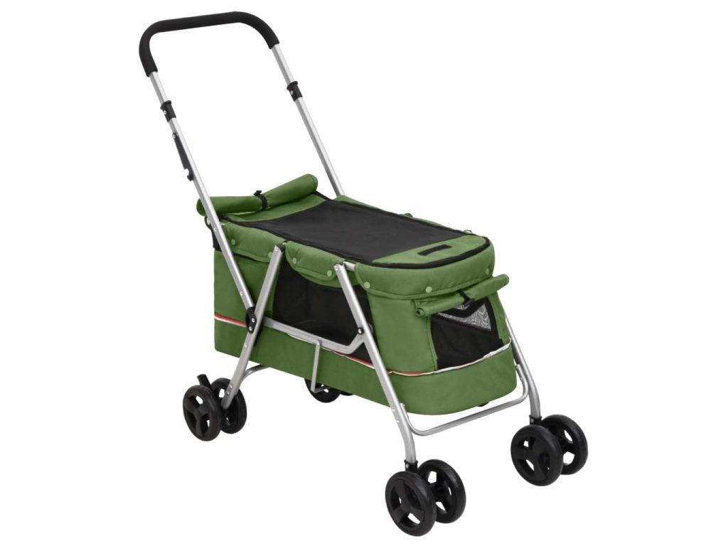 Multidom Skladací kočík pre psa zelený 100x49x96 cm ľanová tkanina