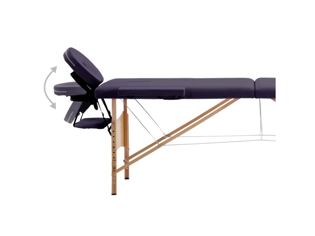 Multidom Skladací masážny stôl, 2 zóny, drevo, fialový