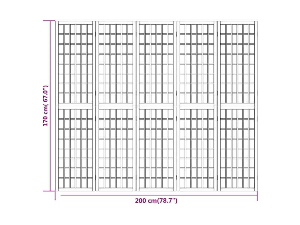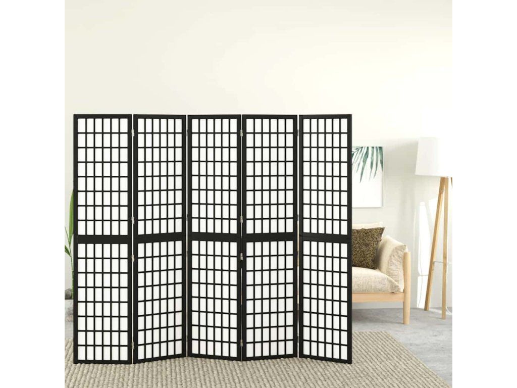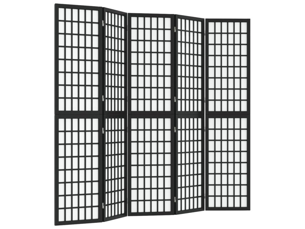 Multidom Skladací paraván s 5 panelmi japonský štýl 200x170 cm čierny