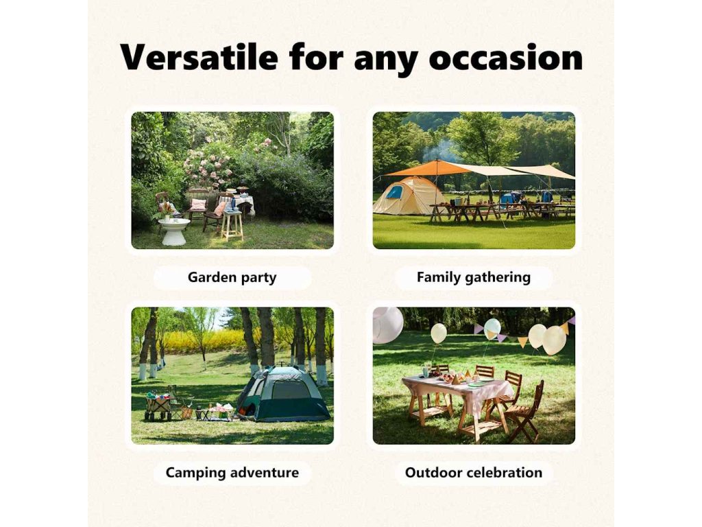 Tento nevyhnutný skladací párty stan je vynikajúci na širokú škálu vonkajších podujatí, ako sú rodinné stretnutia, grilovačky, popoludňajšie pikniky, kempovanie, narodeninové oslavy a mnoho ďalšieho!