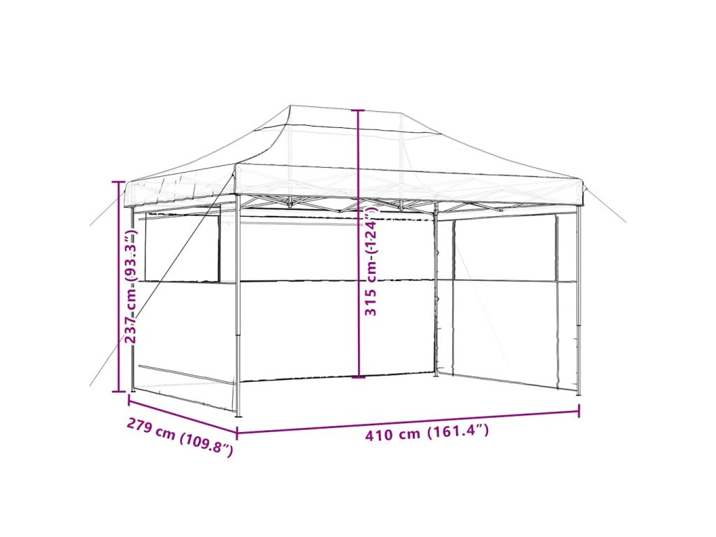 Tento skladací párty stan s bočnými stenami je ideálny na širokú škálu vonkajších podujatí, ako sú predstavenia, svadby, večierky, grilovačky, festivaly a podobne.