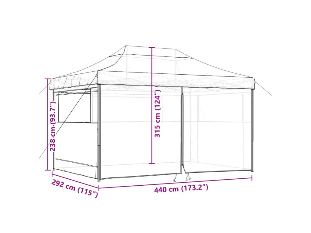 Tento skladací párty stan s bočnými stenami je ideálny na širokú škálu vonkajších podujatí, ako sú predstavenia, svadby, večierky, grilovačky, festivaly a podobne.