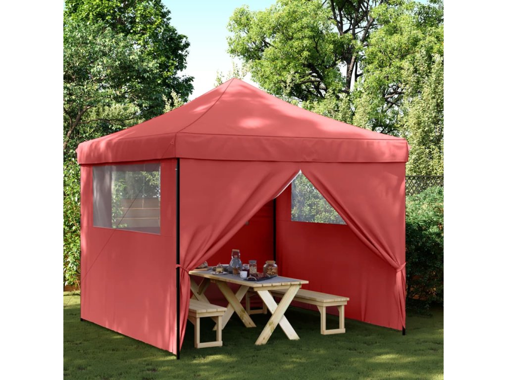 Multidom Skladací pop-up párty stan so 4 bočnými stenami burgundský