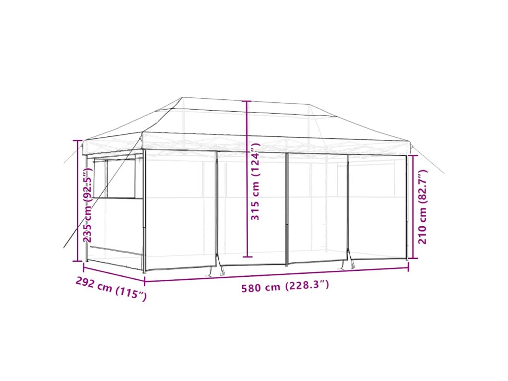 Tento skladací párty stan s bočnými stenami je ideálny na širokú škálu vonkajších podujatí, ako sú predstavenia, svadby, večierky, grilovačky, festivaly a podobne.