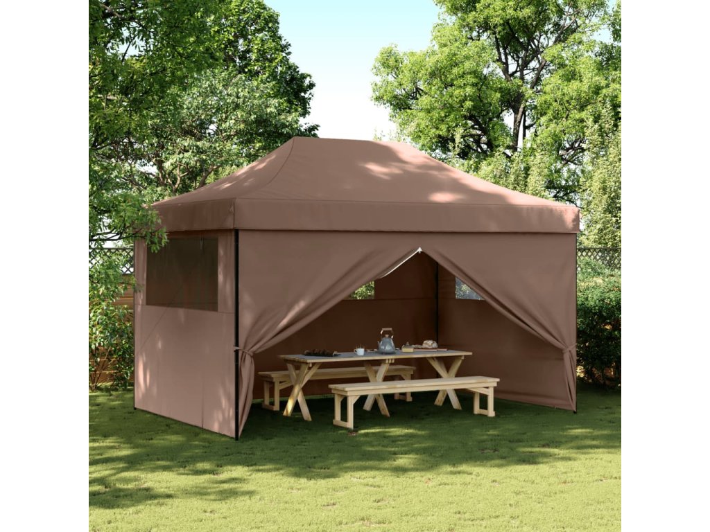 Multidom Skladací pop-up párty stan so 4 bočnými stenami hnedý